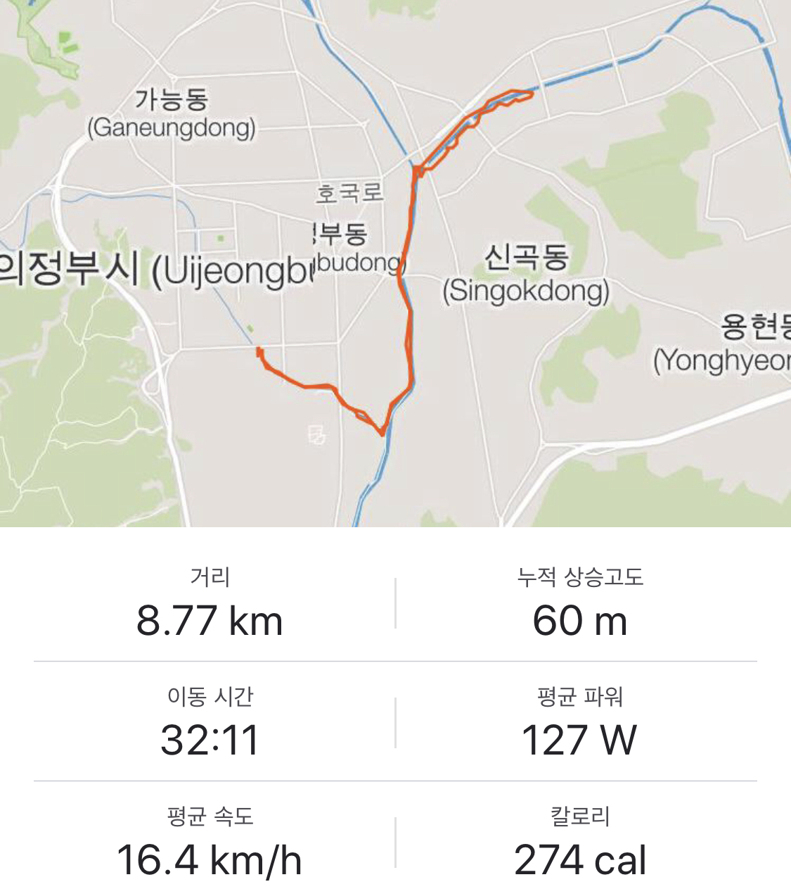 집 근처 하천인 백석천과, 중랑천, 그리고 부용천의 일부 구간을 달렸다.