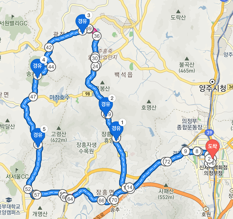 의정부 역에서 출발하는 송추5고개 GPX