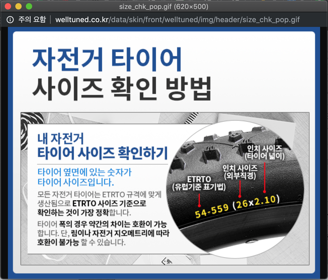 자전거 타이어의 규격을 표시하는 방식을 3가지(ETRTO, Inch, French)로 구분할 수 있습니다.